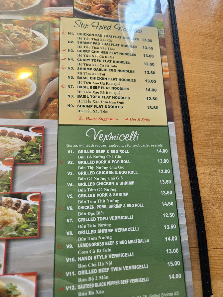 Served with a side of fresh basil, bean sprouts, jalapeno and lime. Extra: Egg Roll $2.00, BBQ meatballs $2.50, grilled shrimp $3.03
