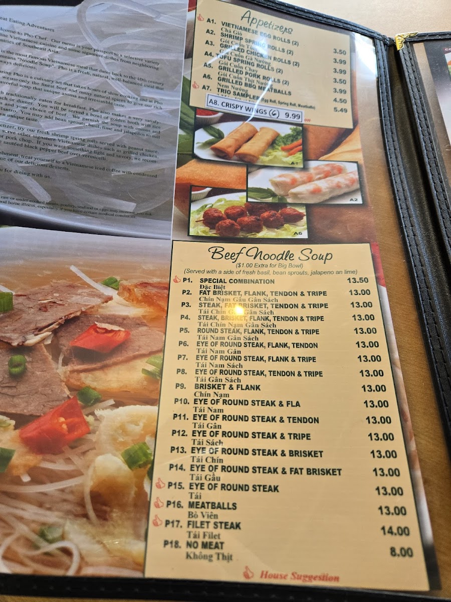 Served with a side of fresh basil, bean sprouts, jalapeno and lime